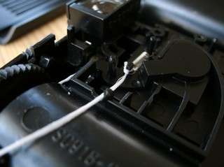 3. Ikatkan benang pada bagian tuas pembuka diafragma yang ada per-perannya (posisikan benang diatas per-peran) lalu rapihkan.